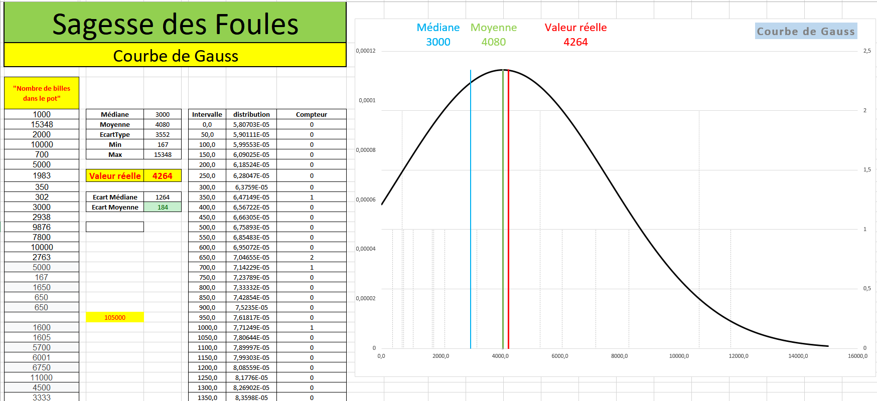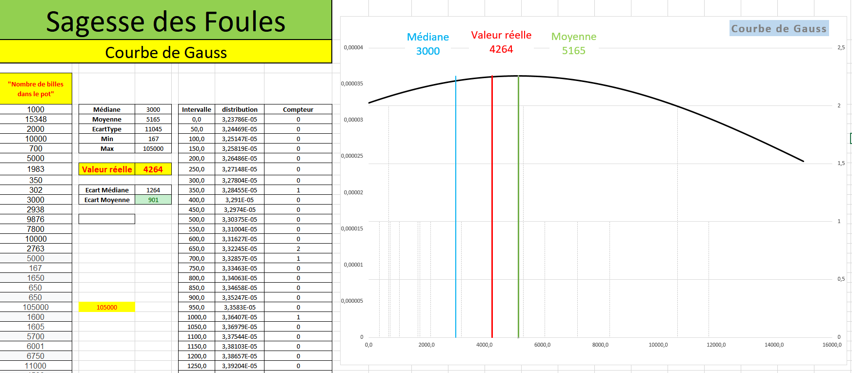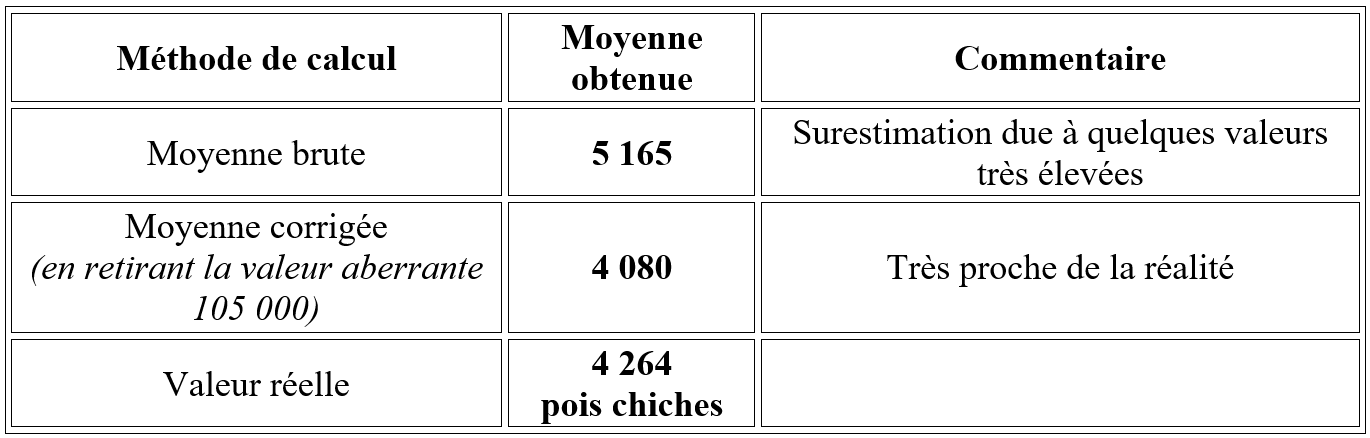 La diffĂ©rence entre la moyenne corrigĂ©e et la valeur rĂ©elle nâest que de â4,3 %, ce qui illustre parfaitement la prĂ©cision collective de lâexpĂ©rience !