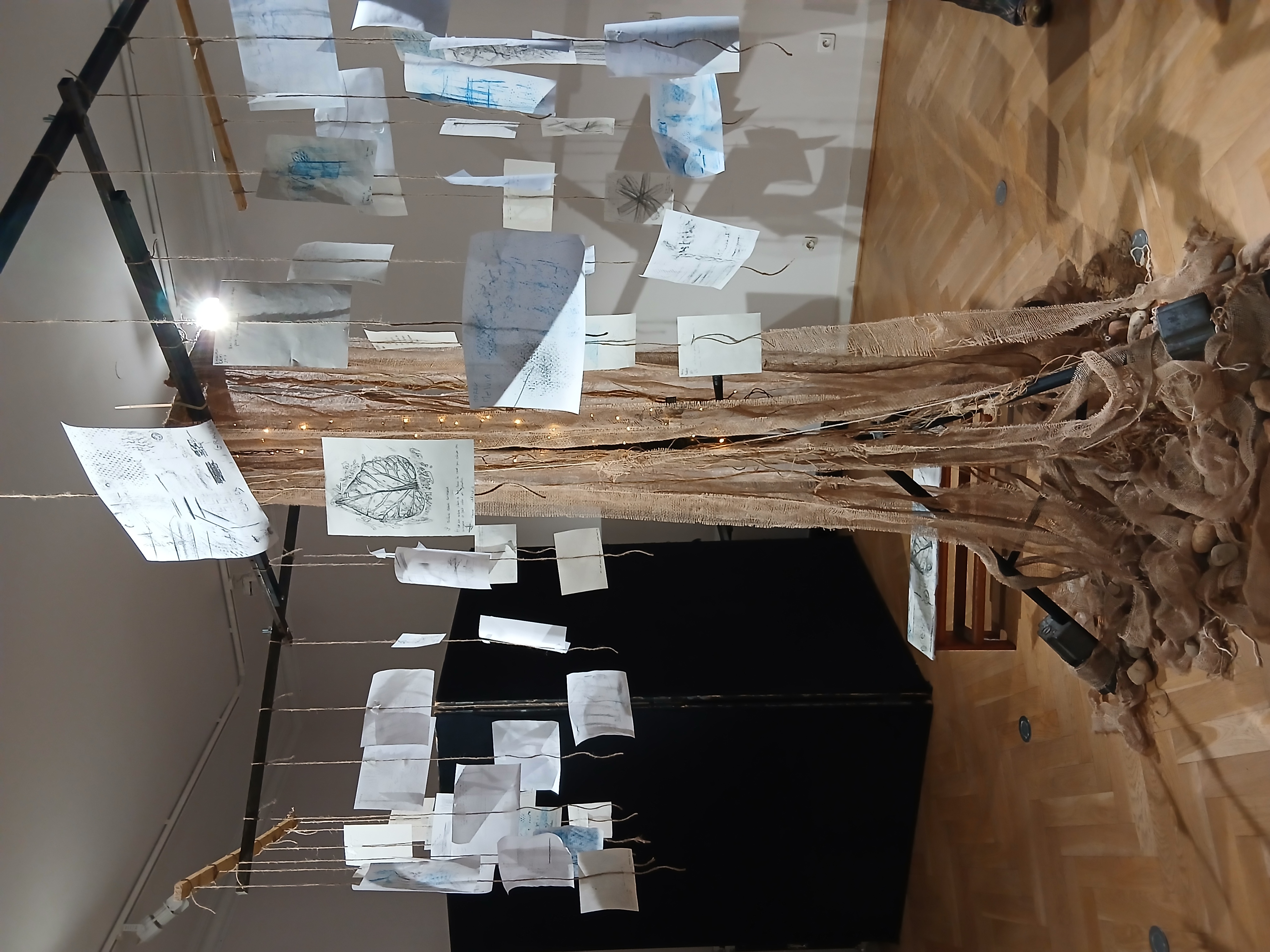 Ce projet s'est déroulé en janvier et février en cours de français avec M. Fagnou et Mme Roudet professeure documentaliste. Lors de la première séance, les élèves se sont appropriés la technique du frottage d'empreintes réalisées à l'intérieur et aussi à l'extérieur du lycée. Ils ont donné libre cours à leur imagination en mettant un titre sur leurs réalisations effectuées sur des papiers calques de grandes dimensions. Lors de la deuxième séance, sur un autre support papier et toujours à partir de réalisations d'empreintes, ils ont détouré à l'encre de Chine des éléments précisément choisis afin de leur donner une expression singulière à partir de laquelle ils ont raconté une histoire.