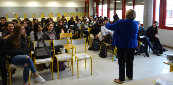 Dans un premier temps ce furent les premières et terminales ST2S qui l’ont questionnée sur son parcours personnel, sur la place des femmes en politique avant d’enchainer sur des questions spécifiques à la mise en place des politiques sanitaires et sociales dans notre pays. Notre public, tout à son écoute, a pu mesurer l’importance du travail mené à l’Assemblée Nationale et notamment au sein de la Commission des affaires sociales dont Mme Huillier fait partie. A la fin de ce premier échange, les élèves ont pu faire le lien entre la réalité parlementaire et les attentes de leur programme en sciences et techniques sanitaires et sociales.