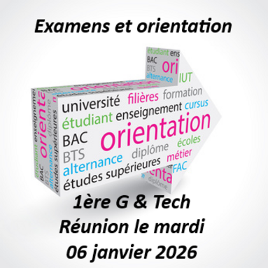 1ère Générale et Technologiques : réunion au sujet des examens et de l'orientation - mardi 06 janvier 18h