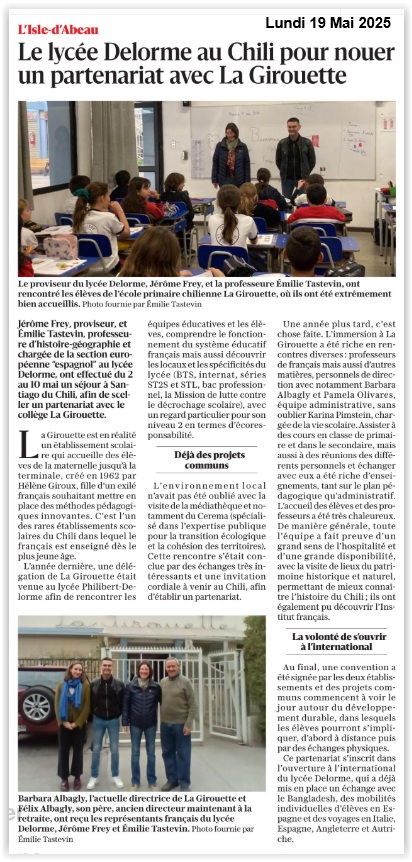 Le lycée Delorme noue un partenariat avec La Girouette (Santiago du Chili)