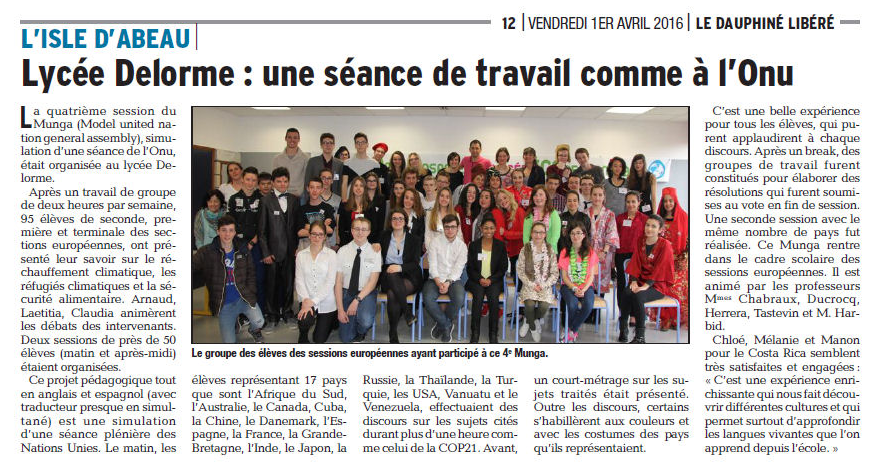 Por primera vez, desde hace 4 años, los alumnos de seconde, première y terminale se reunieron en asamblea durante un día completo para participar a un MUNGA, con los alumnos de la clase europea inglés y española del instituto.